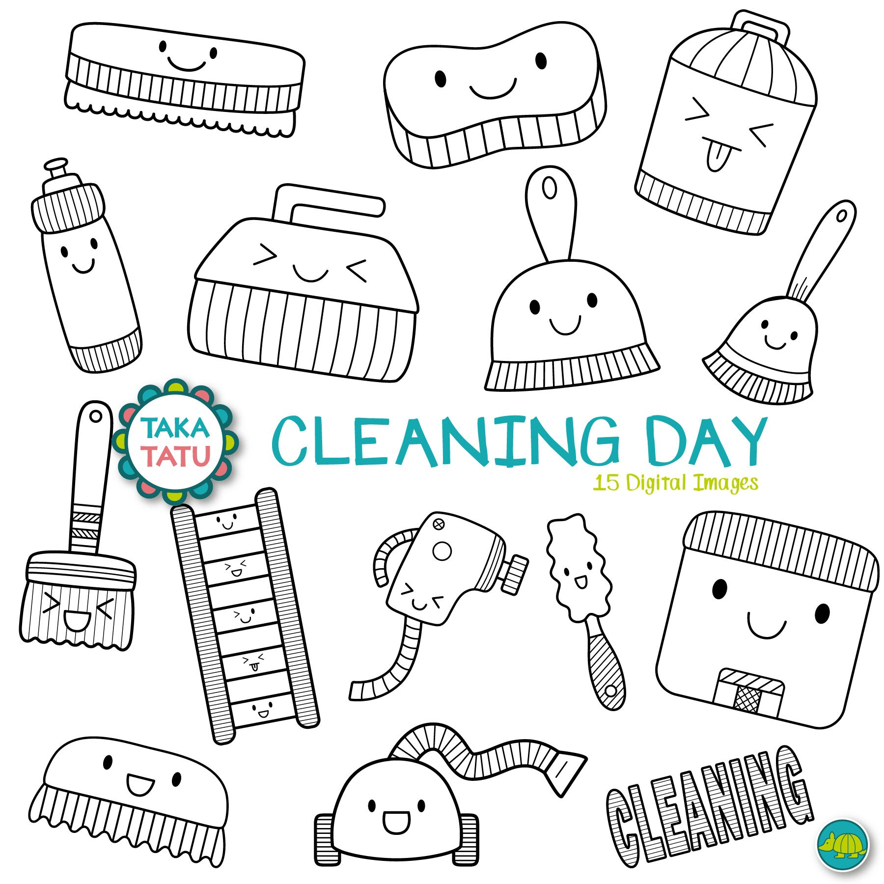 Cleaning Digital Stamp Kawaii Cleaning Clipart Cleaning Etsy