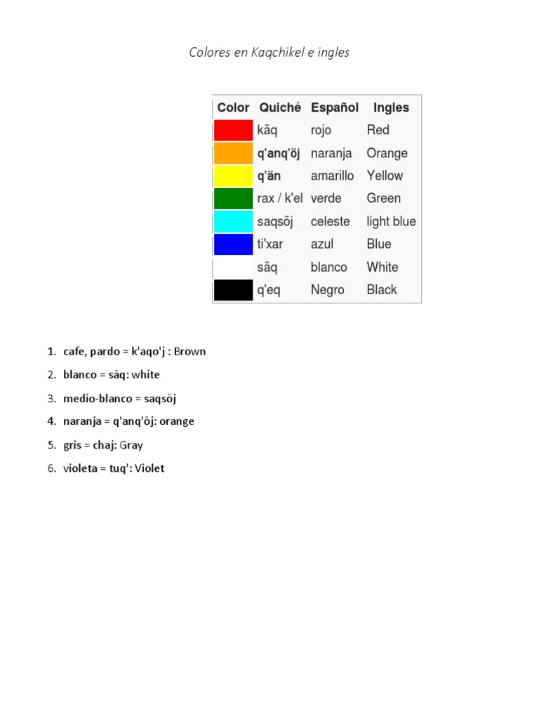 Los Colores En Ingles The Colors El Linguistico